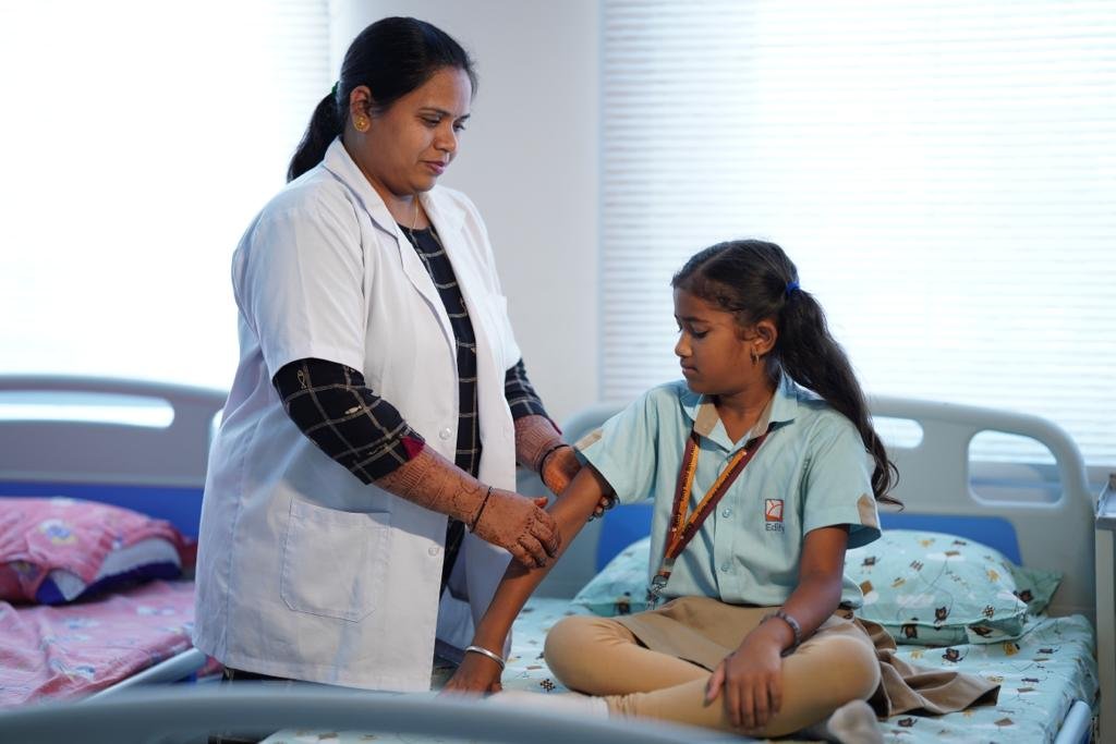 Every EDIFY School features a fully equipped infirmary that offers prompt first aid to students in need, overseen by a dedicated full-time nurse. The school nurse collaborates with a qualified doctor to periodically assess and report on the student’s basic physical development. Additionally, the school nurse plays a crucial role in health education within the school community through projects and contributions to the school newsletter.